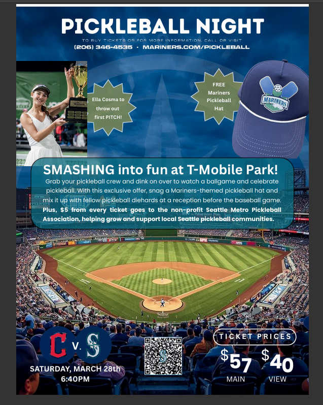 - The Rainier Beach Community Center no longer has drop-in pickleball on Sundays. The "activities" web site still says they do, but the community center staff confirmed they do not. (Thank you, Deb!)