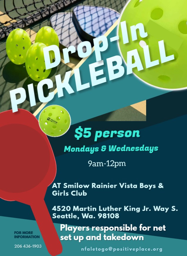 - The Rainier Vista Boys and Girls is again hosting adult drop-in pickleball on Mondays and Wednesdays from 9am until noon.